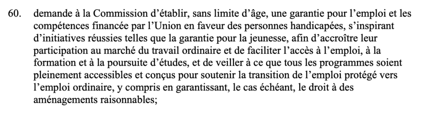 Bardella a voté CONTRE une garantie européenne pour l’emploi et la formation des personnes handicapées.
