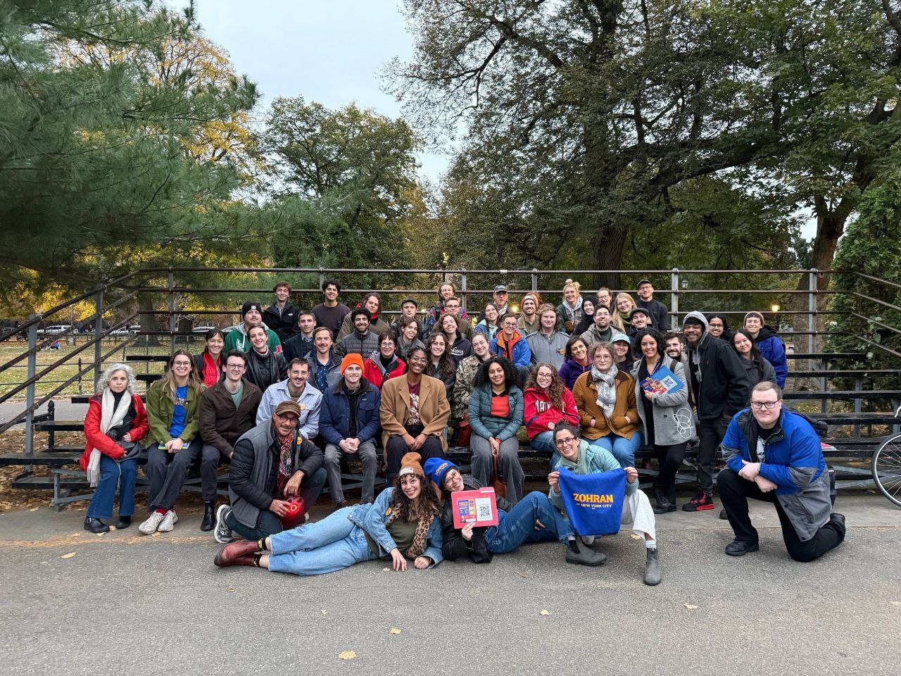J’ai participé cette semaine à une action de porte à porte (aka. Canvassing dans leur jargon). Au briefing juste avant de partir, plusieurs dizaines de jeunes. Une moyenne d’âge autour de 25 ans. Beaucoup d’entre eux participent pour la 1ère fois à une action de campagne. Ils sont briefés sur les arguments chocs, les questions les plus fréquentes. Les équipes de campagne ont développé une application de campagne qui permet de se diviser les quartiers pour le porte-à-porte et de renseigner, porte par porte, les retours de manière à pouvoir faire un suivi. Comme on a l’habitude de le faire à la France Insoumise, on se divise en petites équipes de 2 ou 3. Mais ici, chacun a une liste d’adresses extrêmement précises (car ils ont accès à des informations que nous n’avons pas, les habitantes et habitants s’enregistrant comme démocrates). Au cours du porte à porte, on rencontre de nombreuses personnes enthousiastes qui ont déjà voté (le « early vote » ouvre une semaine plus tôt et le nombre de votants en « early vote » a explosé, ce qui est plutôt bon signe), dont certains que l’on convainc de venir participer aux actions de campagne. D’autres pensent déjà avoir voté pour Zohran mais il s’agit en réalité des primaires. Le porte à porte sert aussi à indiquer le lieu du bureau de vote et les modalités du vote (pas simples en pratique).