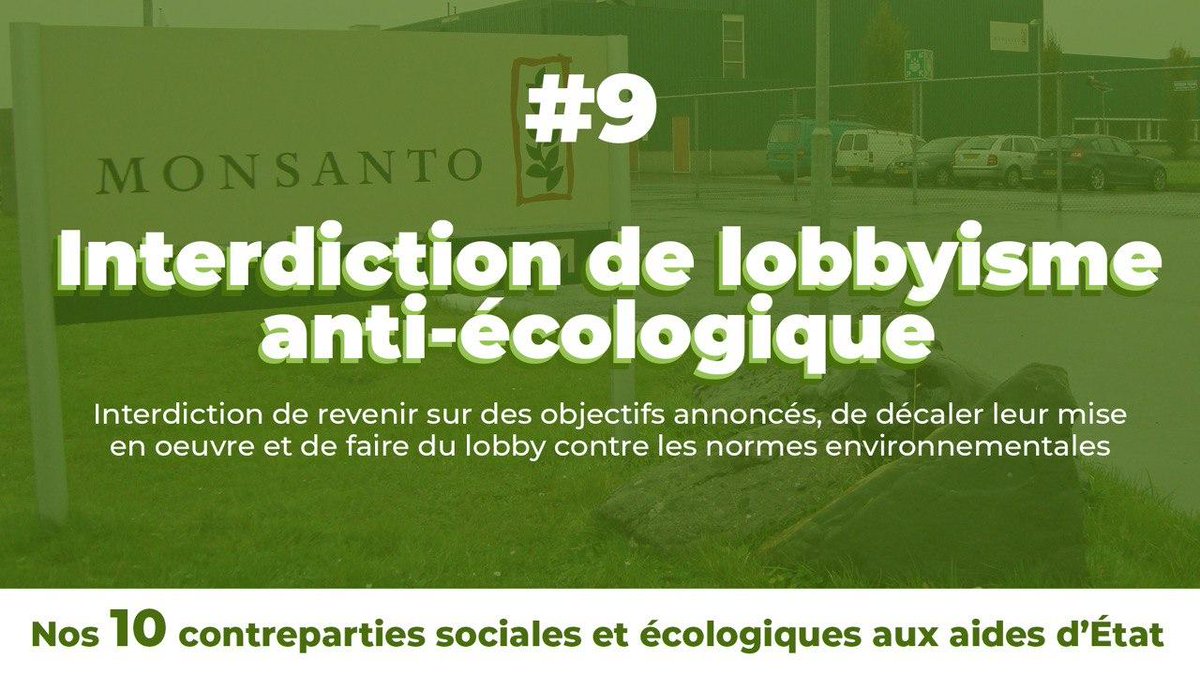 L’Etat vient au secours de l’entreprise et elle continue son lobbying anti-écologique ? Obligeons les entreprises qui font du lobby contre nos normes environnementales à rembourser les aides ! (9/10)